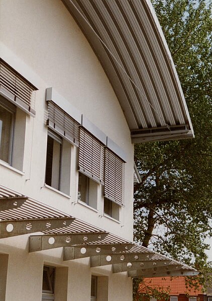 Das Bauwerk erhielt eine Thermohaut als Fassade, die durch Sonnenschutzblenden gegliedert wird. Die interne Aufteilung wird über ein neues Haupttreppenhaus organisiert. Das Bauwerk beherbergt Arbeitsplätze für die Administration und Sozialräume für gewerbliche Mitarbeitende beiderlei Geschlechts.